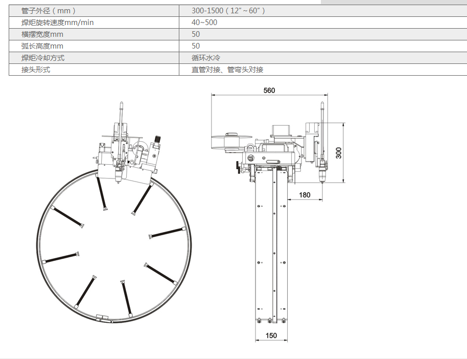 該系統(tǒng)是專為超大管徑的管管MIG焊接而設(shè)計(jì)的專用小車,需選配相應(yīng)的齒圈可對(duì)大于φ300mm的管子進(jìn)行焊接,可以實(shí)現(xiàn)打底焊接、填充焊