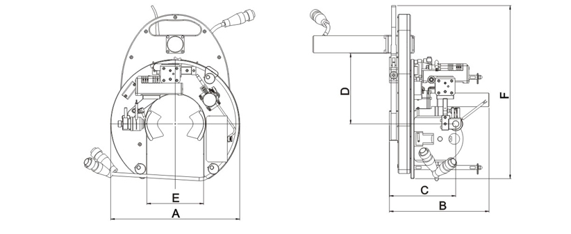主要部分用鋁制,結(jié)構(gòu)輕巧,卡鉗式裝夾方式可適用于不同管徑采用無間隙齒輪傳動設(shè)計、旋轉(zhuǎn)平穩(wěn)、轉(zhuǎn)動慣量小,無卡阻現(xiàn)象》機械模導(dǎo)向機構(gòu),使鎢極及工件表面的距離保持恒定適用海壁碳鋼、不銹鋼材質(zhì)的管道焊接焊槍循環(huán)水冷,連續(xù)工作時可長》可自焠、加絲焊接