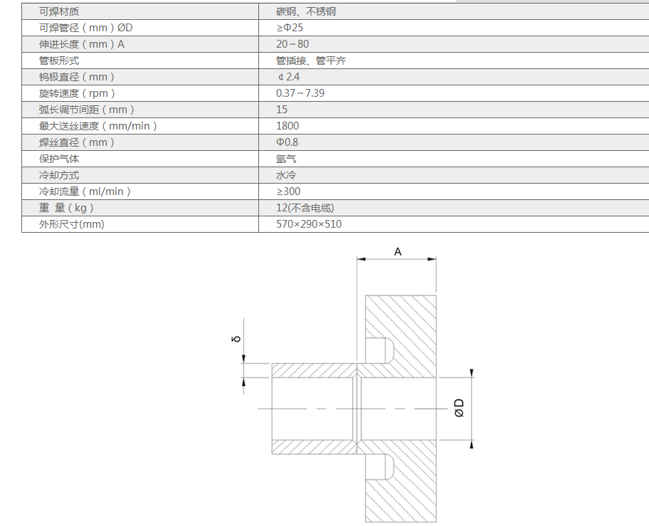 驅(qū)動(dòng)采用進(jìn)口的空心杯直流伺服電機(jī),在轉(zhuǎn)速范圍內(nèi)無(wú)級(jí)調(diào)速。所有的水、電、氣的管、線均無(wú)纏繞;具有自動(dòng)弧長(zhǎng)控制功能,也可關(guān)閉該功能手動(dòng)調(diào)節(jié)弧長(zhǎng);采用特制的水冷TIG焊槍的結(jié)構(gòu)形式