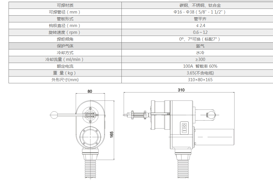 適用于電站、冷凝器不銹鋼、鈦合金管板焊接不送絲自溶,體積小,重量輕,方便操作