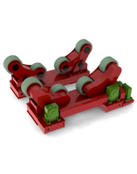 該滾輪架主要用于圓柱形筒體焊接、裝配、拋光,并廣泛應用于風電、壓力容器、石化、管道、鋼結構、鍋爐、造船、堆焊修復等行業(yè)。滾輪架采用蝸輪蝸桿減速機驅動,主動架四只滾輪采用全齒輪嚙合傳動,實現四輪驅動,轉動平穩(wěn);通過擺嚆擺角,以話應工件直徑變化;滾輪架采用聚氨酯全包膠輪,特殊場合采用鋼輪;交流變控制,速度為數字顯示,遠距離手控盒操作。